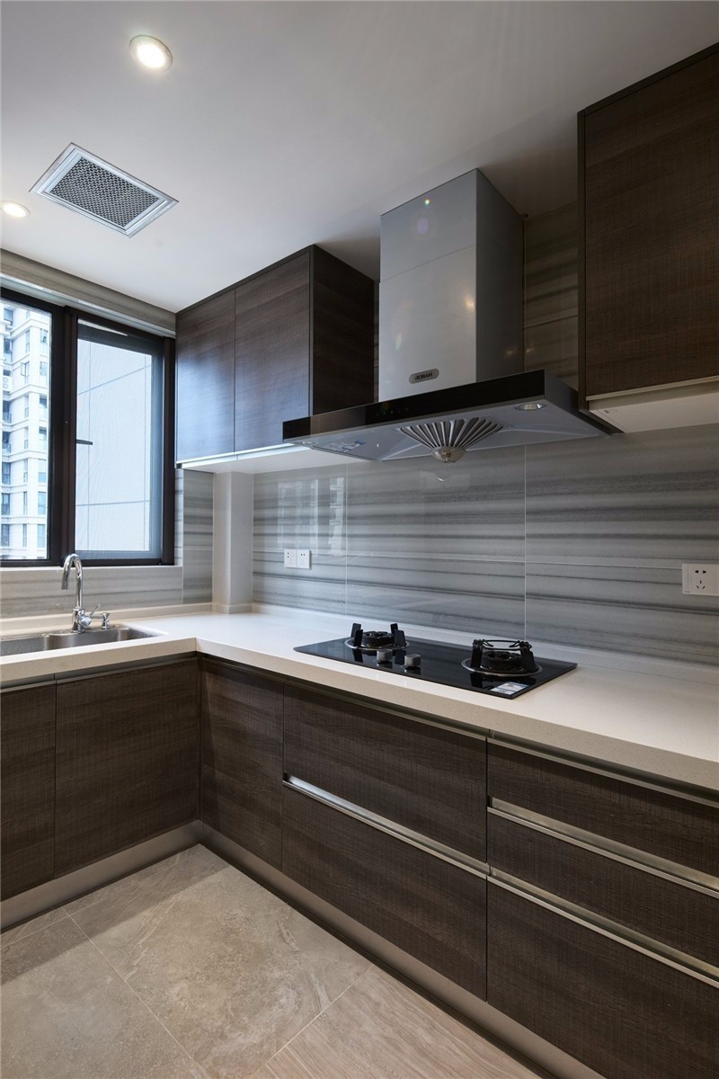 櫥房以深色為主,顯示出低調(diào)的檔次