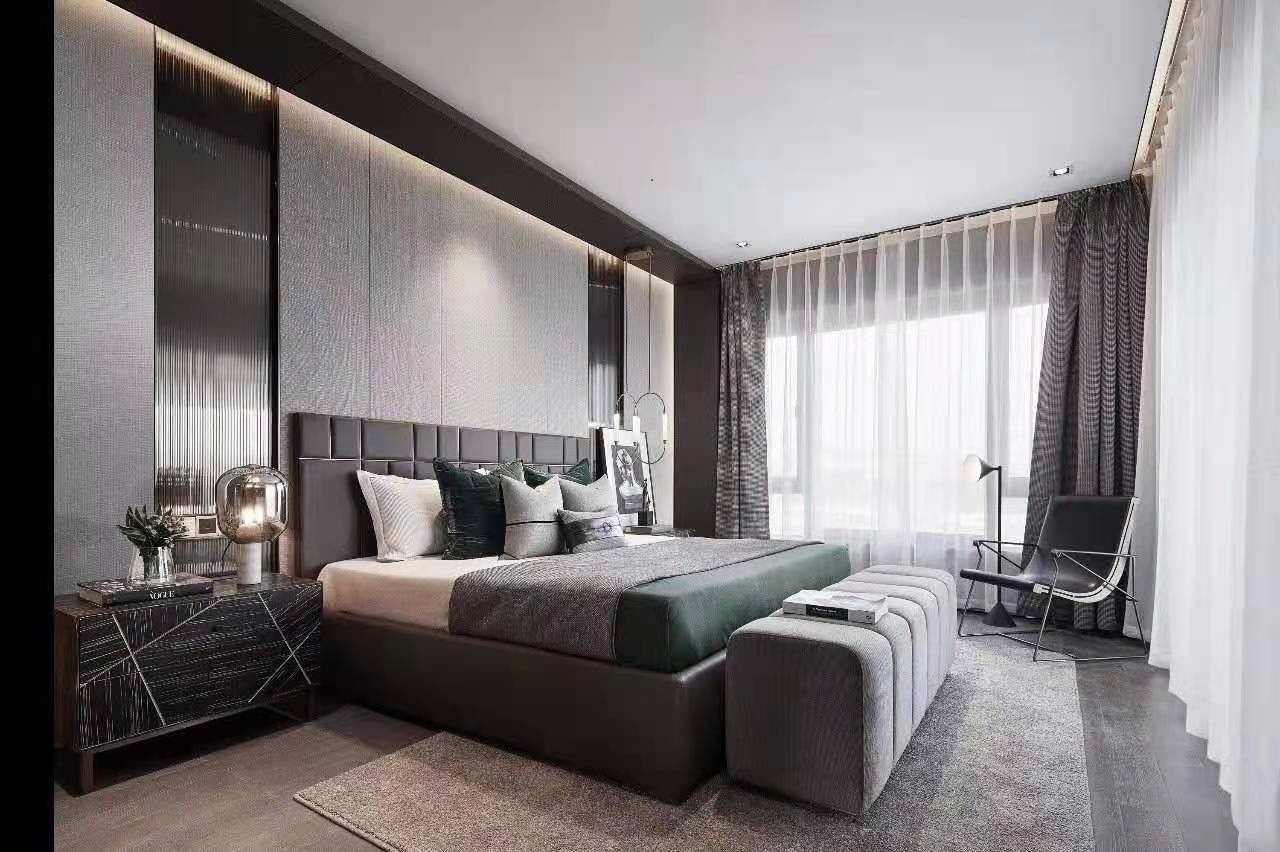 整個(gè)臥室無主燈,全部使用吊頂及輔助光源