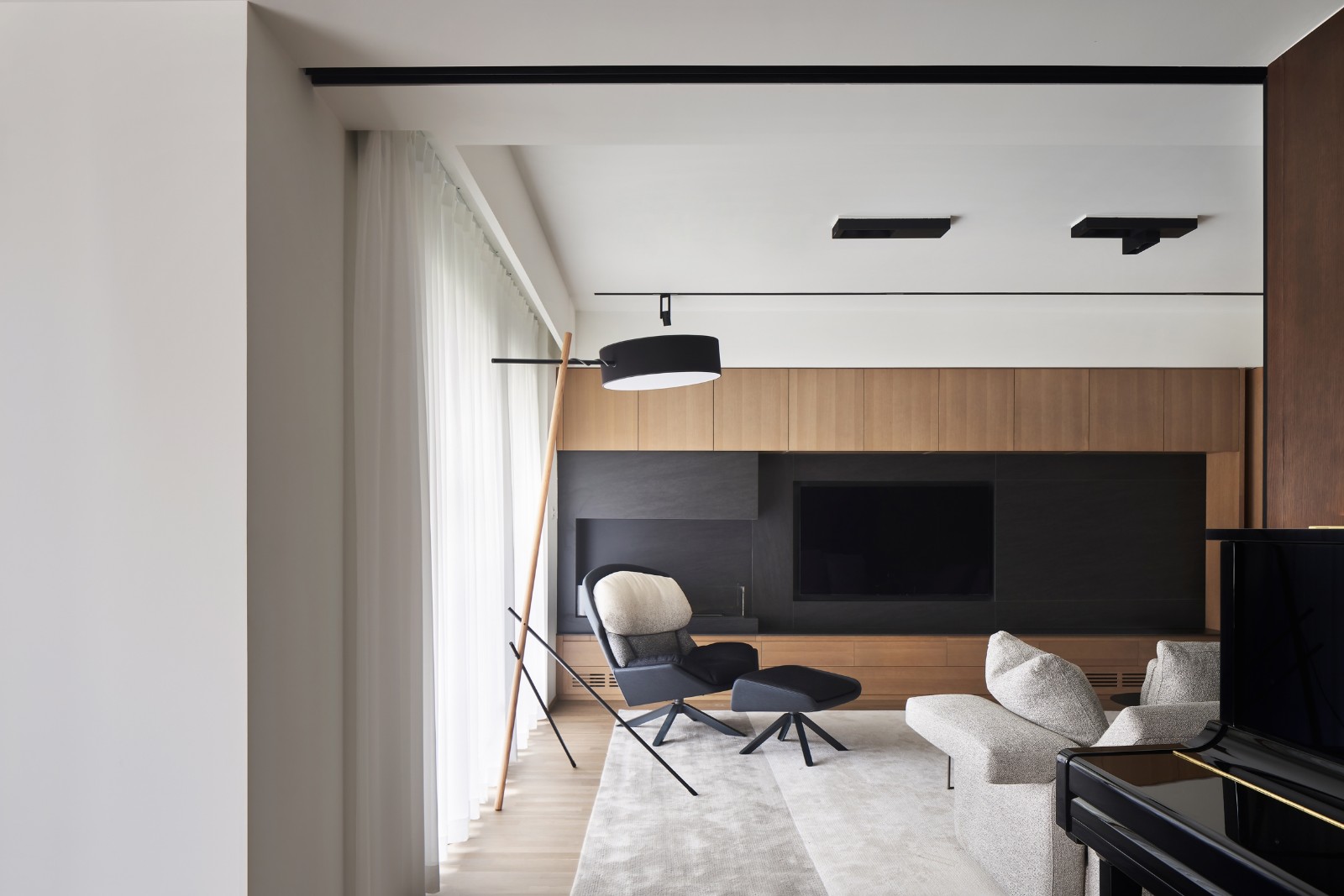 本案的業(yè)主是一家四口,女主人已經(jīng)顯懷6個月了,還是親力親為的與設(shè)計師仔細(xì)討論了關(guān)于套新房裝修的全部細(xì)節(jié)??紤]到寶寶即將出生,大女兒也才6歲的年紀(jì),在房屋裝修的材料選擇上十分的苛刻要求。都是選擇安全系數(shù)高的材料,也是裝修后不久就能立馬就能住進去的。在房屋的設(shè)計也是小心斟酌和打磨,一起來看看這套極簡又大氣的實景效果吧!