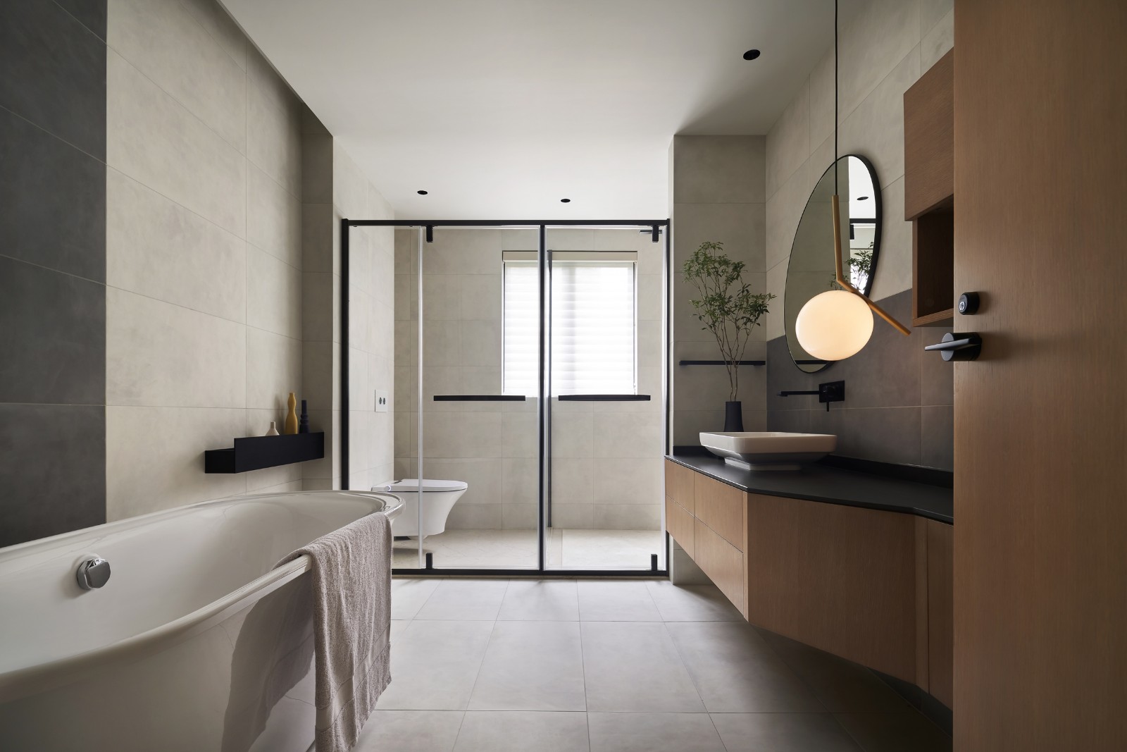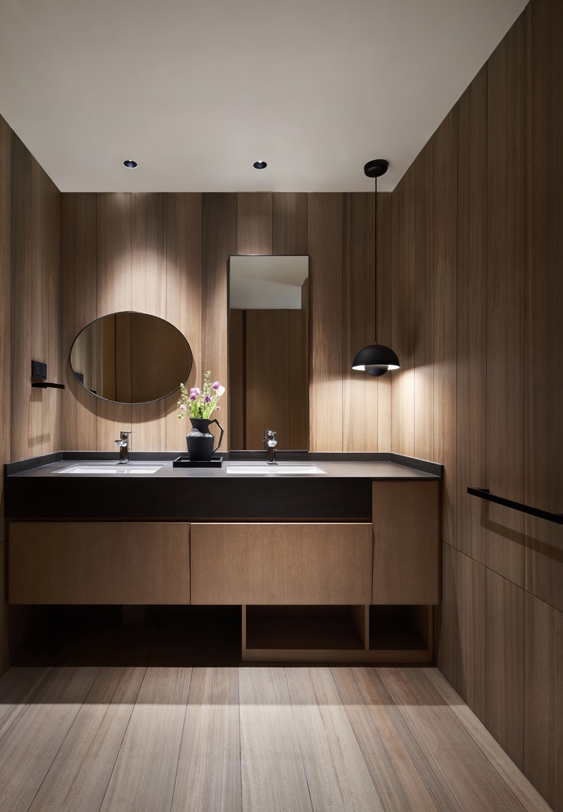 整體的設(shè)計都是現(xiàn)代極簡風(fēng)格,衛(wèi)生間也不例外。幾乎全實木的一個包裹,不得不說,業(yè)主真的在品質(zhì)生活這一塊兒,拿捏的死死的。