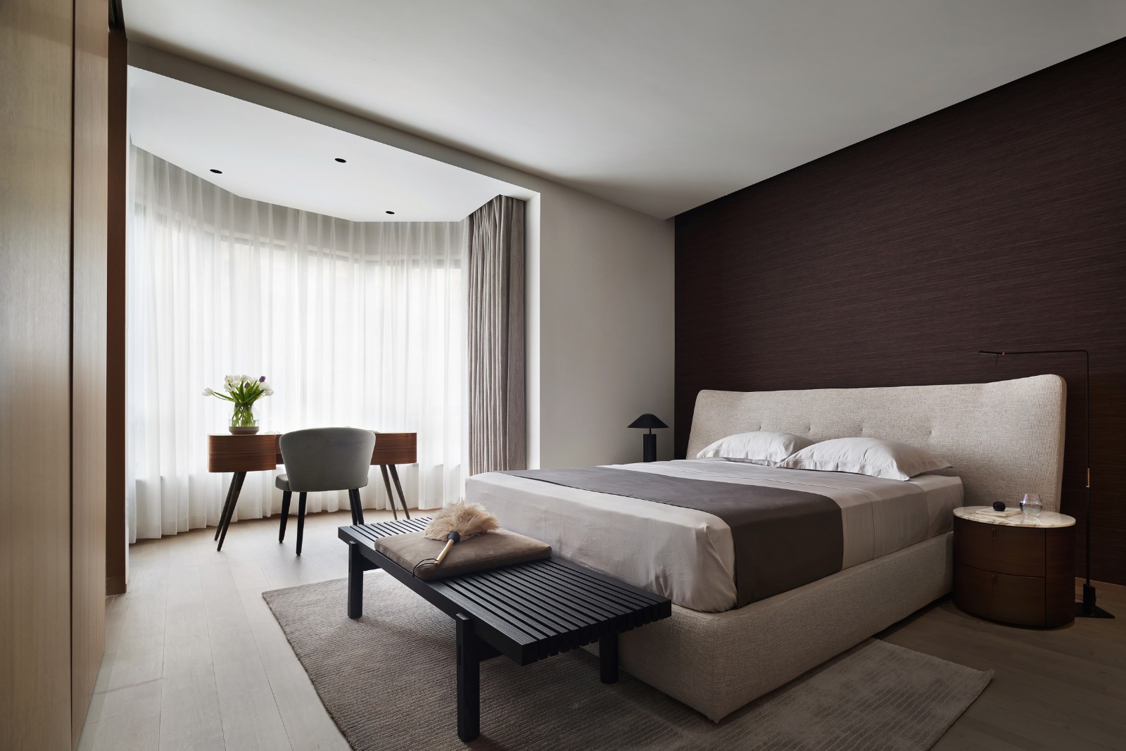 由于男主人工作的關(guān)系,在設(shè)計初步討論時就明確了采用實木設(shè)計,臥室也不例外,一是更加環(huán)保健康,二是經(jīng)久耐用,三是大氣!